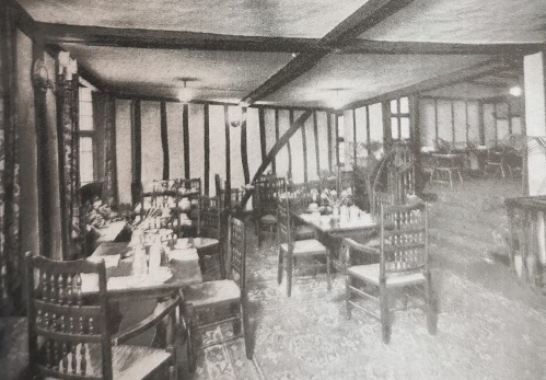 By the 1920s the ambience had changed, there were no longer oriental themes but instead a frieze of college crests. Upstairs the decoration of the Oak Room made a feature of the original oak beams.