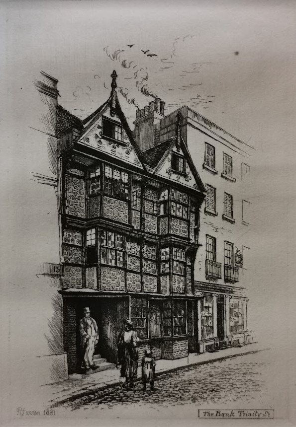13/8/1954 This year marks the 150th anniversary of Lloyd’s Bank in Cambridge. In 1804 two brothers named Foster who were already trading as millers established a bank in Bridge Street. In 1835 they transferred to the Turk’s Head in Trinity Street and opened branches in St Ives, Saffron Walden and Ely. In those days two members of staff were boarded on the premises, one sleeping on a bed in front of the strong room armed with a rusty sword. At no time was the building left unattended. In 1890 they acquired a site at the junction of Hobson Street and a new building in Renaissance style was opened in 1894. The Capital and Counties Bank took them over in 1904 and 14 years later they amalgamated with Lloyd’s. In 1919 the two offices were merged and the Sidney Street premises chosen as the main branch. In 1935 a considerable extension was built on the corner site. (Cam. News)