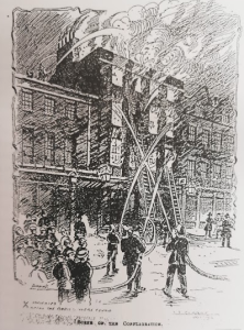 Fire at no.18 9th March reported by Cambridge Daily News. Arthur Matthew from next door was one of the first on the scene at 3am. Night porters from Trinity poured water on the blaze and the Volunteer Fire Brigade’s Captain came quickly. The widow lodging house keeper and her servant, 16 years old, were asleep in bedrooms on the second floor.