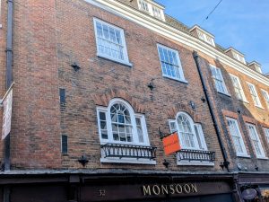 No. 32 is a mid C18 red brick house with Venetian windows on the first floor. It was extended W early in the 19th cent. John Bowtell, bookbinder and antiquary, lived here. Inside there are original cornices, panelled doors and a staircase. There is a good early 19th century staircase in a well lit through a roof lantern. (see 1959 Royal Commission on Historical Monuments Survey of Cambridge)