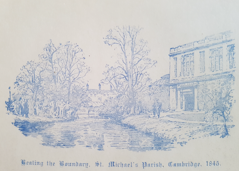 The following picture shows the annual ritual of beating the boundaries of the parish, here in 1845 along the banks of the Cam.