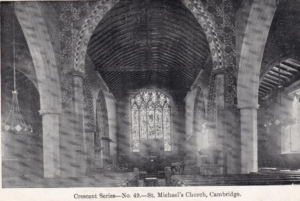 27/9/1962 St Michael’s Church in Trinity Street is “an intolerable disgrace”, says the Vicar of St Mary the Great, its sister church. Now there are plans to turn it into a modern parish hall with kitchen for meetings while the east end will become a small chapel for prayer. The massive restoration scheme will cost £10,000 and to promote it the church will be flood-lit. The youth club will give a show on the lines of a ‘Review’ and operate a ‘talent scheme’ where young people will be given money to be taken away and multiplied. (Cam.News)