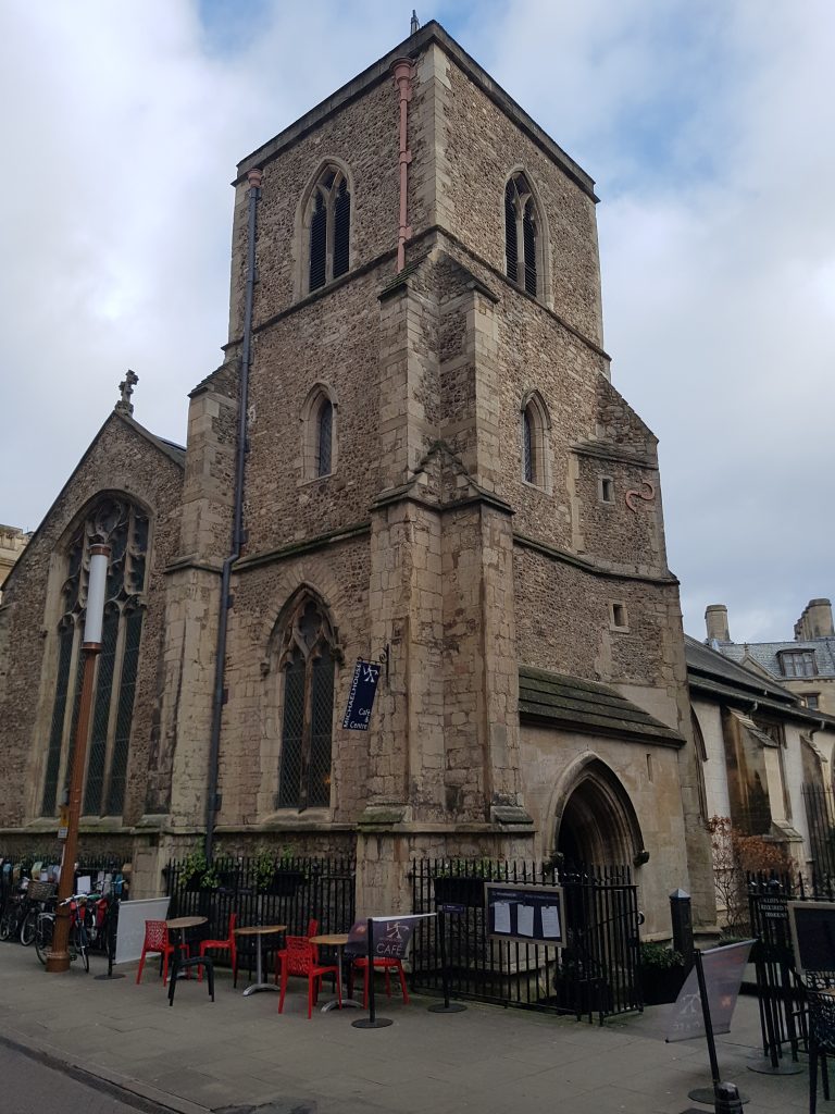 F A Reeve in ‘The Cambridge Nobody Knows’ (1977) writes about the life-sized portrait of Charles I at the church. Legend said that it was presented by the King to the mayor of Cambridge who lived in the parish. However, this is undocumented. The picture is first mentioned by the antiquary Cole (1714-1782). A fire at the church in 1849 probably damaged the portrait as some of the canvas was removed and the picture was stored away in the vestry. In 1881 the Town Council asked for the picture to display it at the Guildhall; the church refused and had it restored and put on display.