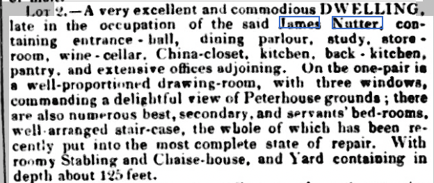 In 1842 James Nutter was declared bankrupt. This was widely documented in the press: