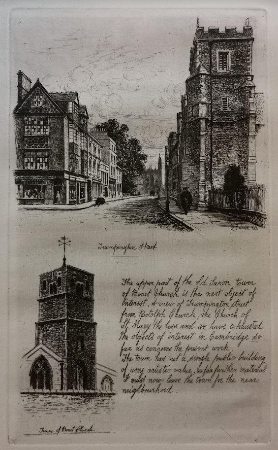 In the church yard is buried James Essex, 18th century architect. Essex married Elizabeth Thurlbourne, the daughter of a Cambridge bookseller. They had two children: James, who died in infancy in 1757, and Millicent, who married, on 10 May 1785, the Rev. John Hammond, sometime fellow of Queens’ College. She died in January 1787.