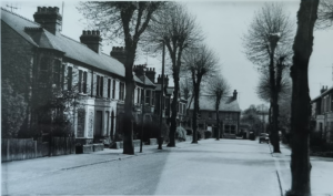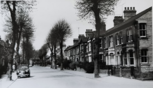 Cam Road (later Elizabeth Way), south end looking north. Junction with Humberstone Road visible on left.