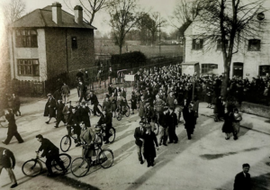 Gravel digging in Chesterton - Pye's factory in background - 1932Do you have any information about the people or places in this article? If so, then please let us know using the Contact page or by emailing capturingcambridge@