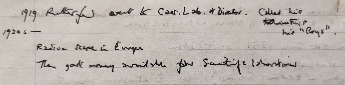 William’s speciality was thermometry and in due course he became head of that department. A family story related that he said one day “I may never see you again. This afternoon I am helping Ernest Rutherford to split the atom”, which infer that he went along to the Cavendish laboratory sometime in the 1920s with some helpful measurng instrument. It is a fact that he telephoned his sister a few days before that intriguing statement, and asked after various kin as if he was saying goodbye.
