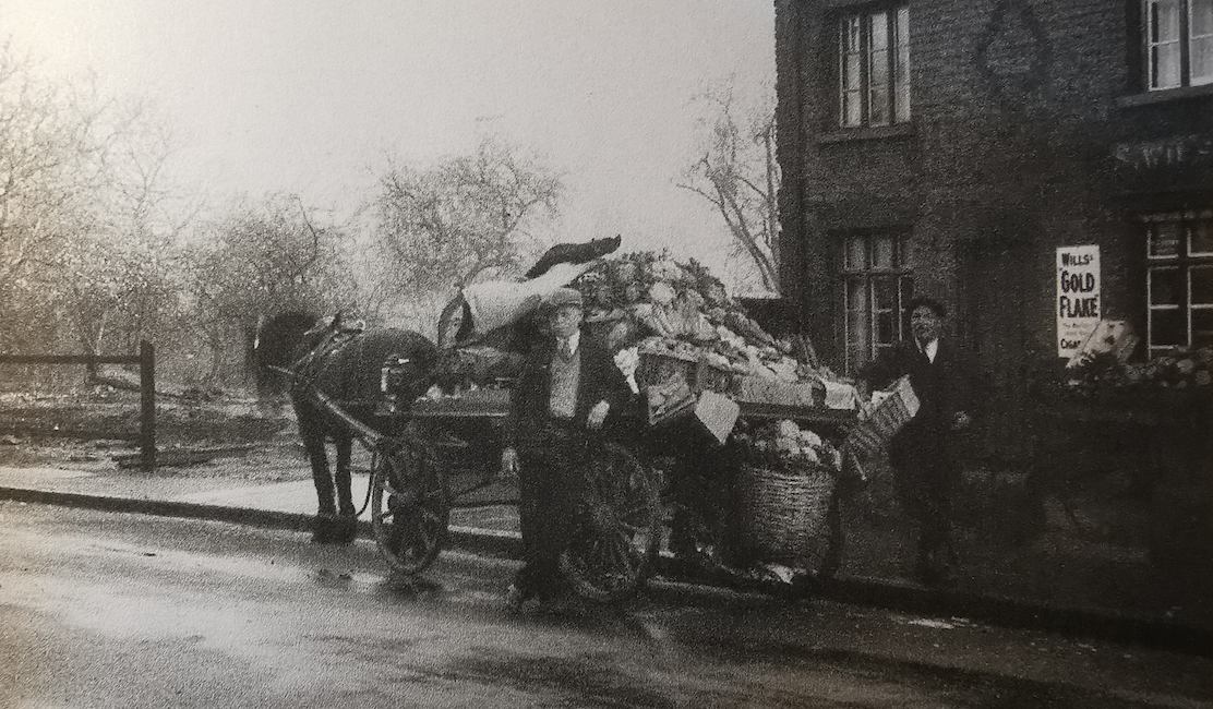 At no.81 lived Stephen Wilson. He kept a greengrocer’s shop there, for which he grew much of his produce on a nearby allotment and a smallholding in Arbury Road. Until 1948 he used a horse and cart. (Images of England, Chesterton, Chesterton Local History Group)