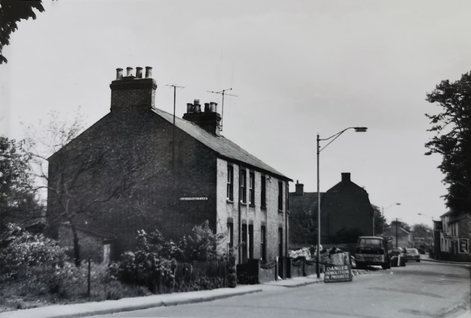 5 - 9 High Street, Chesterton, 1969 (MoC 9/160/69) demolished during the rerouting of the High Street. Note path to Barleycorn Lane1913