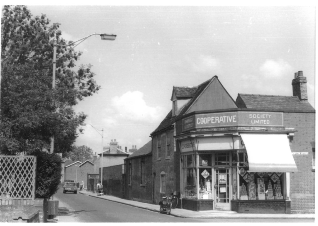 56 High Street Chesterton junction with Chapel Street c1969 (MoC 13/160/69)The public house may have dated back to at least 1786. It was known as the Maltster’s Arms possibly becoming the Maltsters Arms (a large malthouse and kiln stood behind the pub, in the area now named Maltsters Way) and then the Bleeding Heart by the late 1800s, before being converted into a Co-operative store by the 1920s, demolished in the 1970s. The Wheatsheaf has also been demolished and replaced by modern housing.