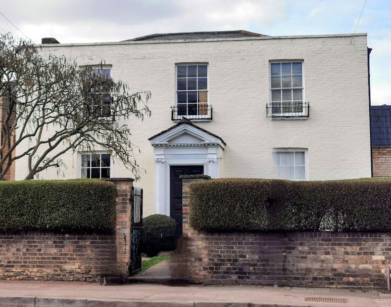81 High Street, Chesterton (far right - date unknown)Royal Commission Survey of Cambridge 1959: built early in the 19th cent. … the street front is symmetrical, in three bays, with a projecting glazed porch in the middle. This last is comparatively modern but the reset door case is of the early 18th cent.