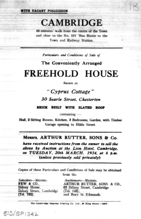 30 Searle Street - 1934 sale description (Cambridgeshire Archives)1913