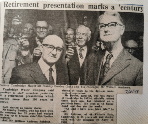 In March William Andrews retired after 50 years with the Cambridge Water Company.
