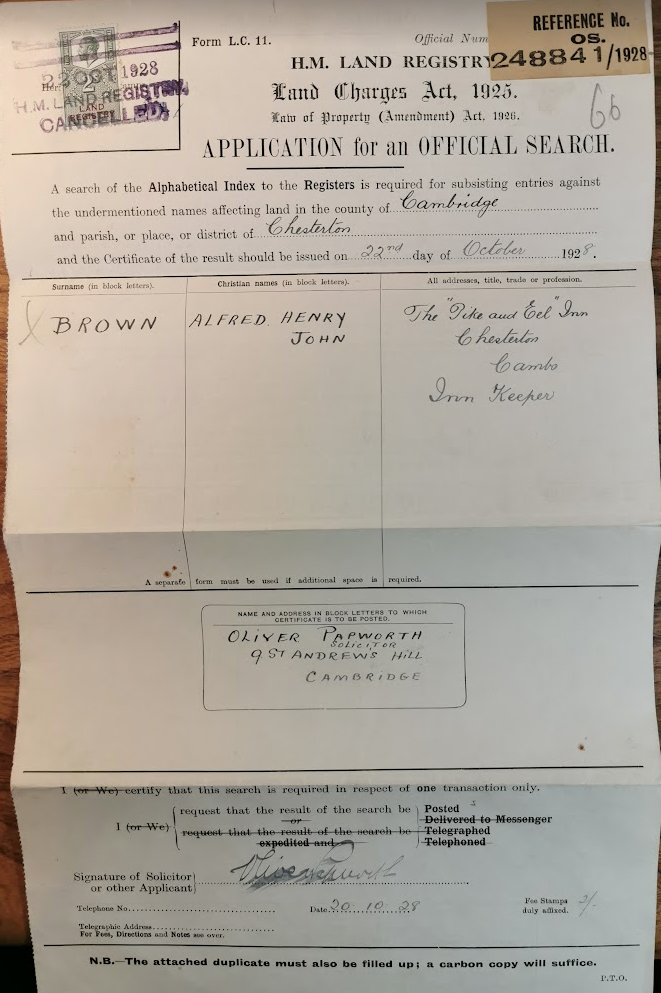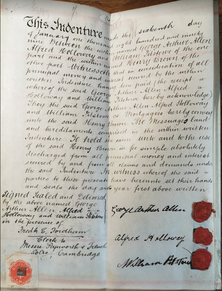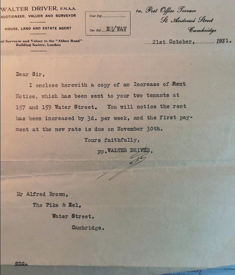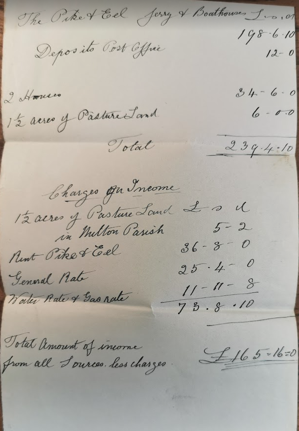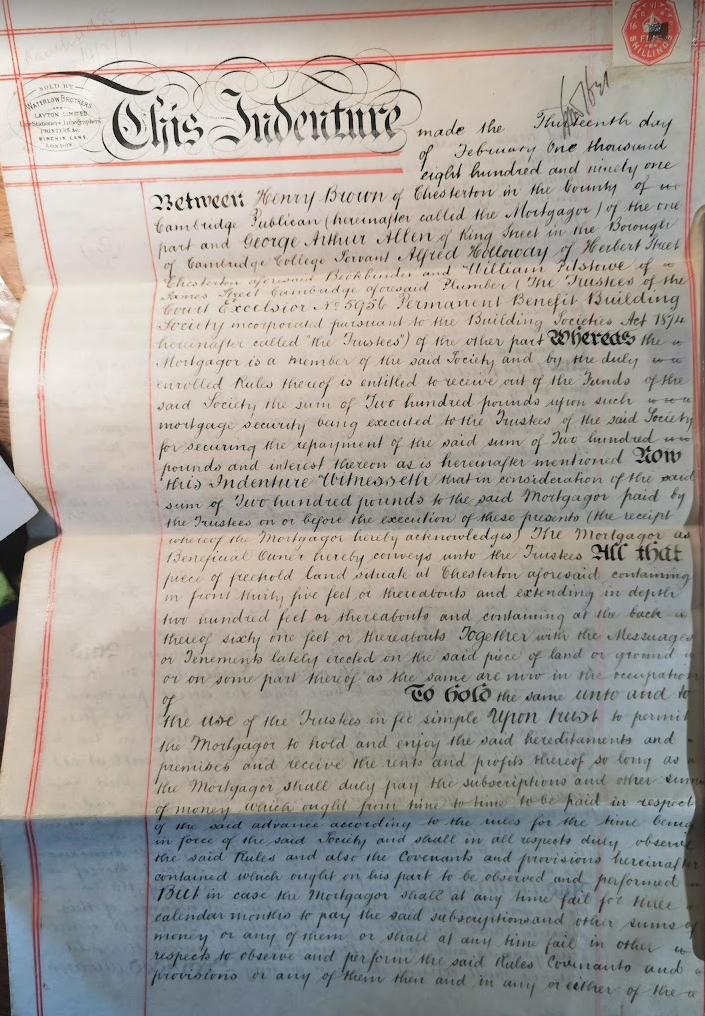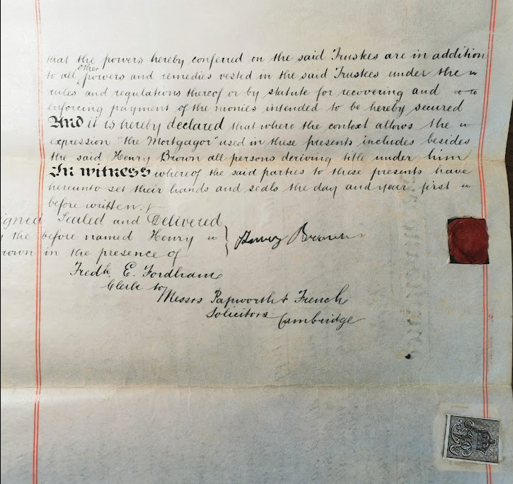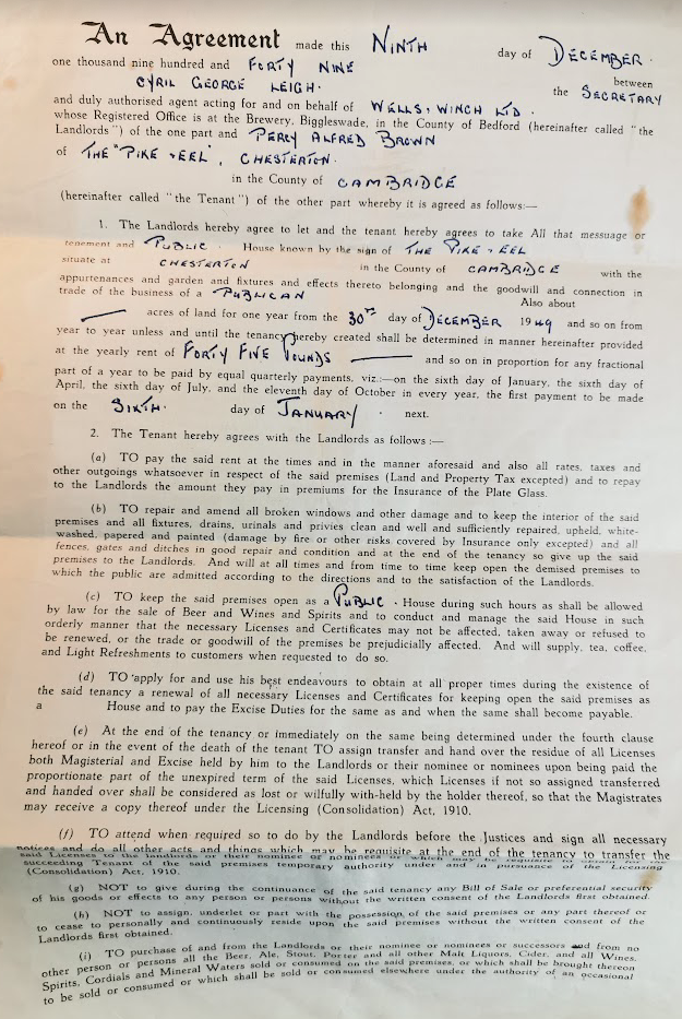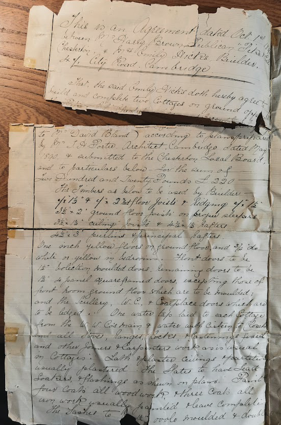 1890 agreement between Emily Hicks and Henry Brown for two cottages opposite Pike and Eel
