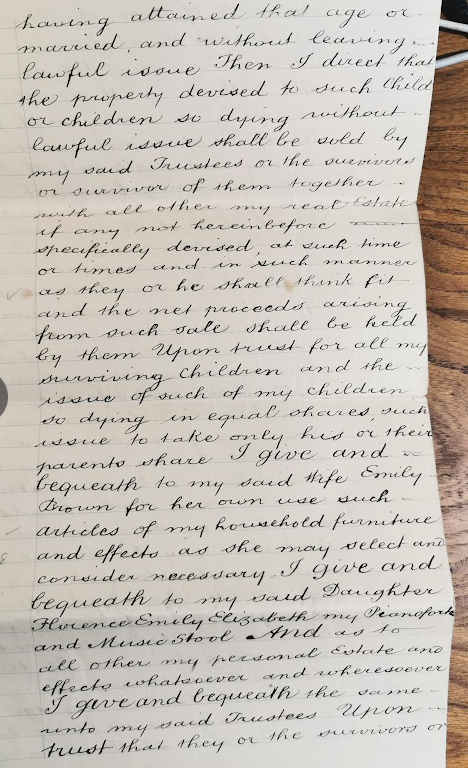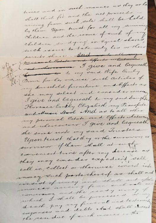 He appoints his wife, Emily Brown and friends, James Clarke and Albert Coe as executors.