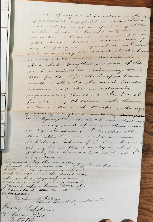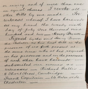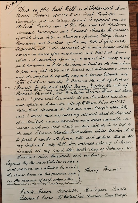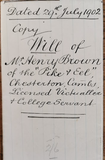 1902: Another copy of Will of Henry Grown of Pike and Eel