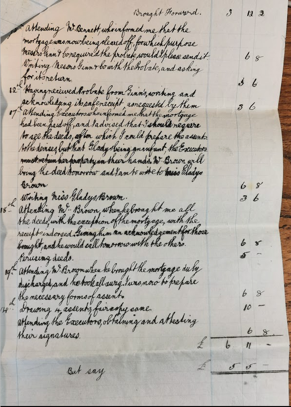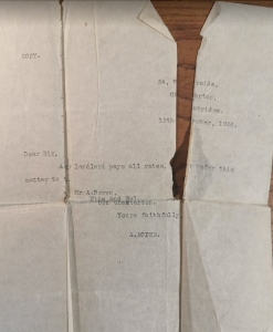 Letter to U Brown re mother’s estate, 54 Water Street, 1915