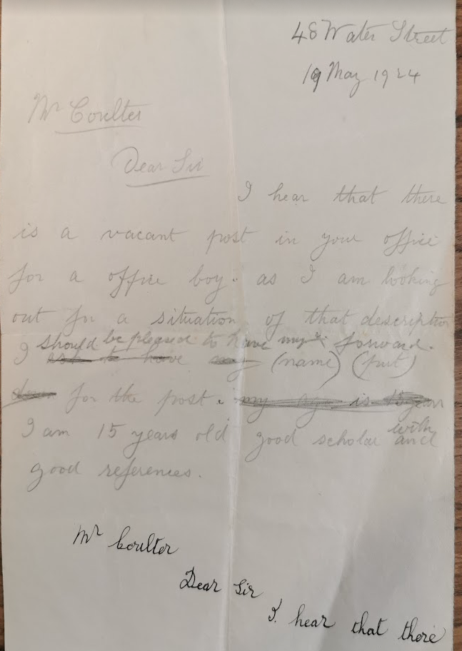 1888: letter of recommendation from Rev Arthur Radcliffe