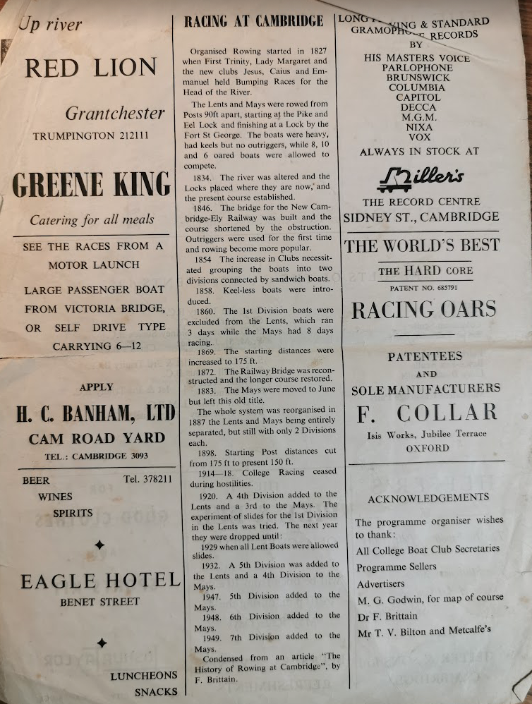 The Bumps Fair was held every June in a field off Fen Road nearby.