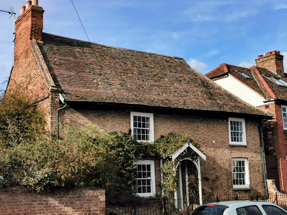 17 Water Street Chesterton ©RGL2023House. Early C18. Timber framed with brick skin. Plaintile roof 2 storeys; 2-window range. Facade clad with late C18 gault brick and entered via a central late C20 door behind trellis porch. One C19 8/8 horned sash either side to each floor. Gabled roof hipped to east. West gable of early C18 red brick with attic-level platband and internal gable-end stack. INTERIOR. Early C18 timber frame intact.