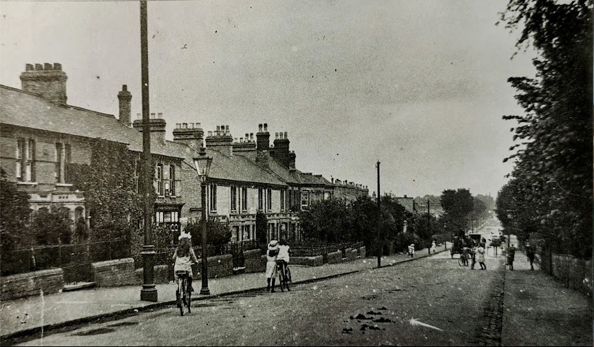 Cherry Hinton Road c.1910. Post office and entrance to Derby Road on left (Cambridgeshire Collection)