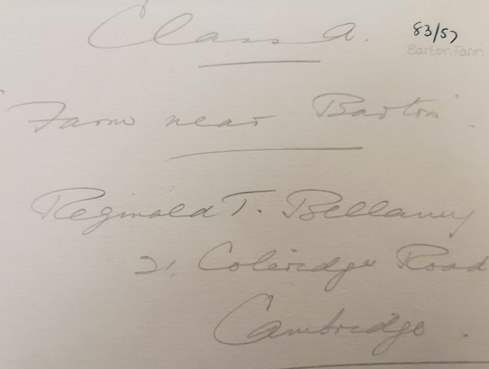 Reverse of ‘Farm near Barton’ photo by Reginald T Bellamy