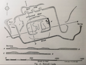 Geoffrey de Mandeville 12th centuryBurwell Castle represents an unusual departure from the more standard oval or rounded mottes of this period, although the intended details of its final appearance are difficult to judge from its incomplete state. The castle is, however, well preserved and all the more interesting on account of the unfinished nature of the work. The motte, the moat and the heaped soil outside, contain valuable evidence for the method of construction, and artefacts found in these contexts will provide information regarding the duration of military activity – perhaps reinforcing the documentary references to the part which it played during the period of 12th century civil war known as `The Anarchy’. The imposition of the castle over an existing settlement is particularly interesting, providing significant insights into the nature of society at the time.