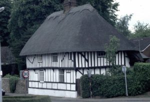 Guildhall to St. James’ guild, now a house. Built before 1495. Timber framed, part plastered. … Building used as poor house in C18, scratched date of 1717.