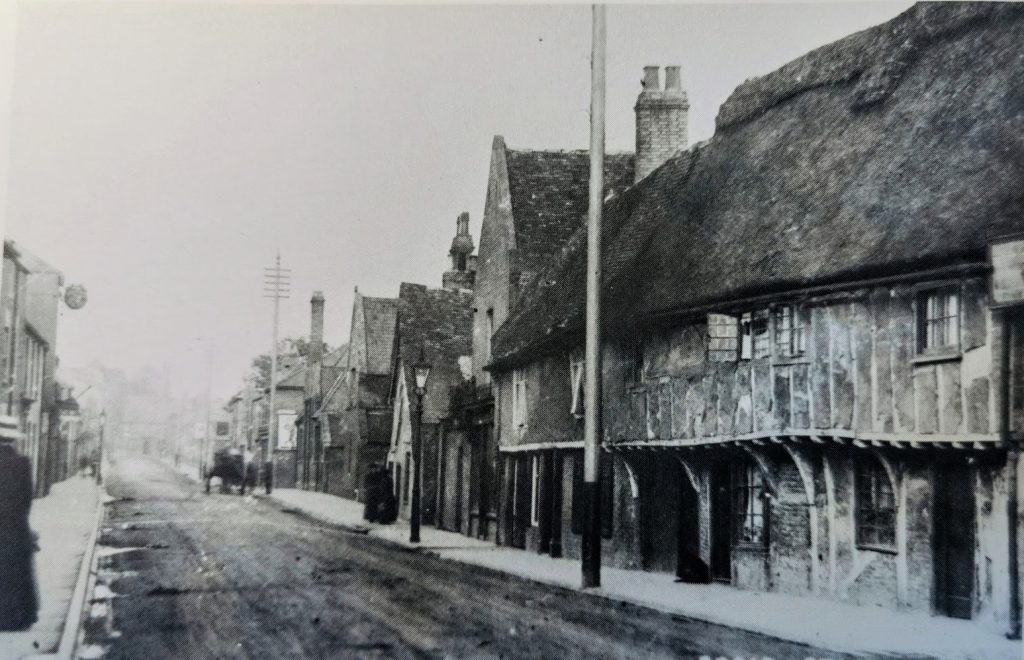 Broad Street looking east from Jubilee Terrace area c.1900The timber framed houses were demolished in the 1930s and replaced by a timber merchant’s showroom.