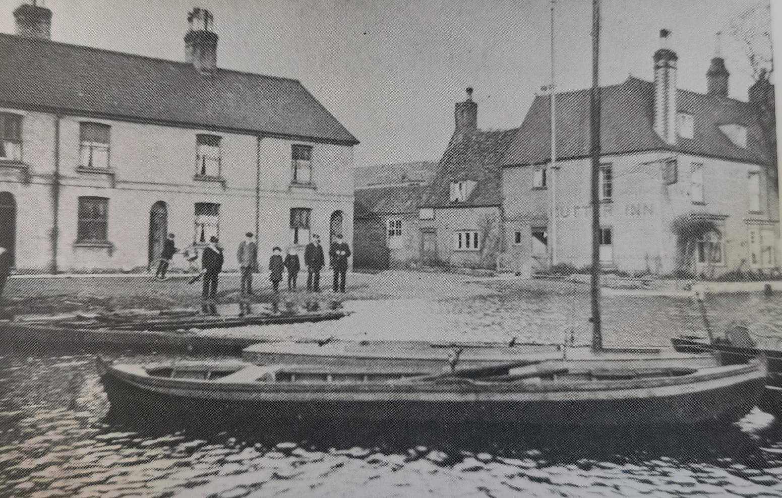 Opposite the Cutter Inn, Ely c.1875. In background is Adam Bryant’s House and Appleyard’s boatyard