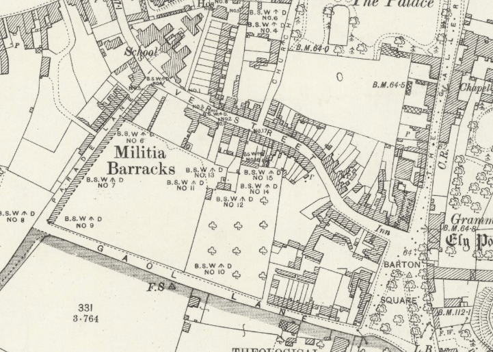 According to Audrey Denton, Recollections of Old Ely, the little street called The Range, off Silver Street, was originally built for the local Militia. There was a hospital at the end of the street with a Day Room. The coal fire range in the kitchen there was given to the Ely Museum. The Militia hospital was used until 1922 and housed casualties from WWI.