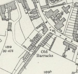Houses were built to house Militia staff. That nearest Silver Street housed the Regimental Sergeant Major, next door was the Sergeant Major, and nearest the hospital was the Quartermaster Sergeant. Little cottages in Parade Lane were used for privates.