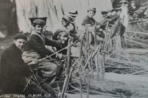 The photo shows barges being unloaded at Fear’s Rod Yard at the bottom of the Three Blackbirds’ yard. Bundles of osiers were brought by barges to make baskets.