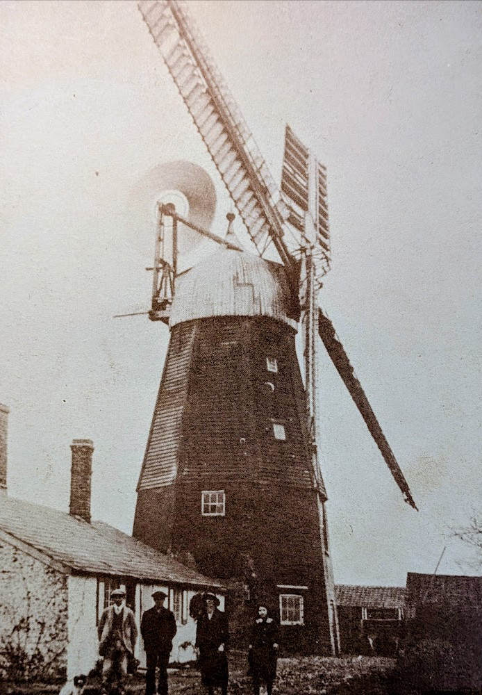 Fordham Road Windmill, Isleham, 1912Arthur Houghton describes how he loved to go and inspect the mechanism of the Fordham windmill. In his time, 1912, the miller was Arthur Sore. The mill last worked about 1940 and the cottages were pulled down in 1963.