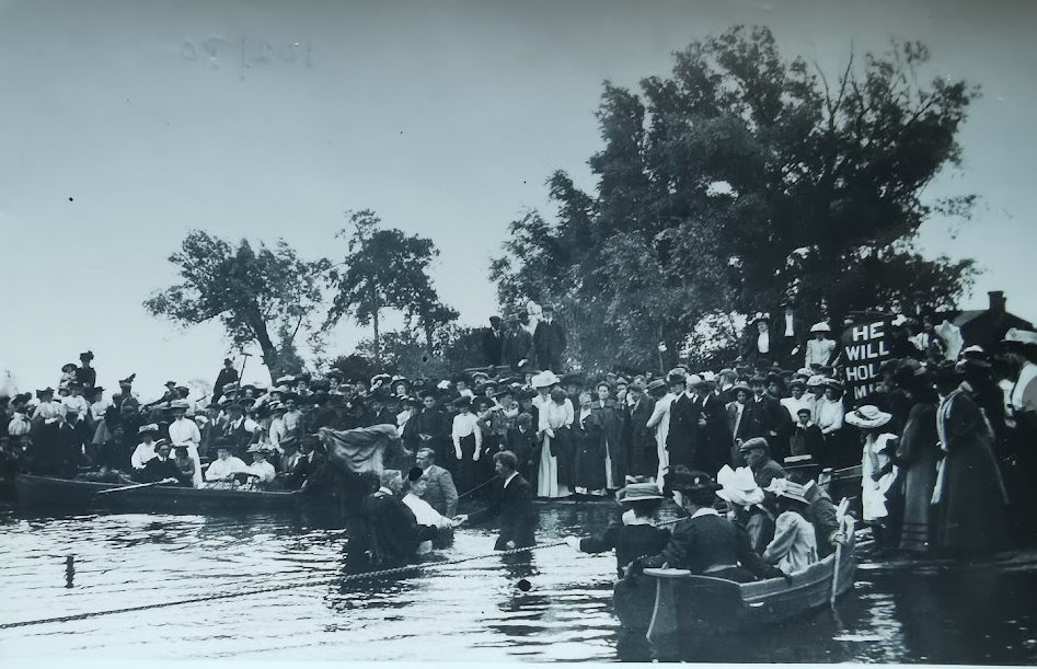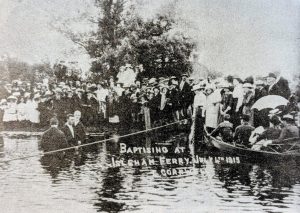 Baptism in the river at Isleham (MoC102/70)In the photo above the chain for the ferry can be seen in the foreground.