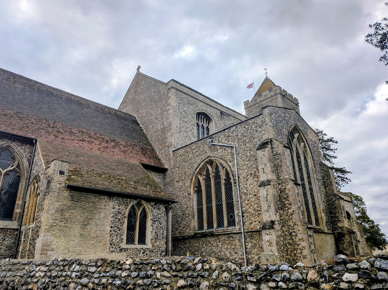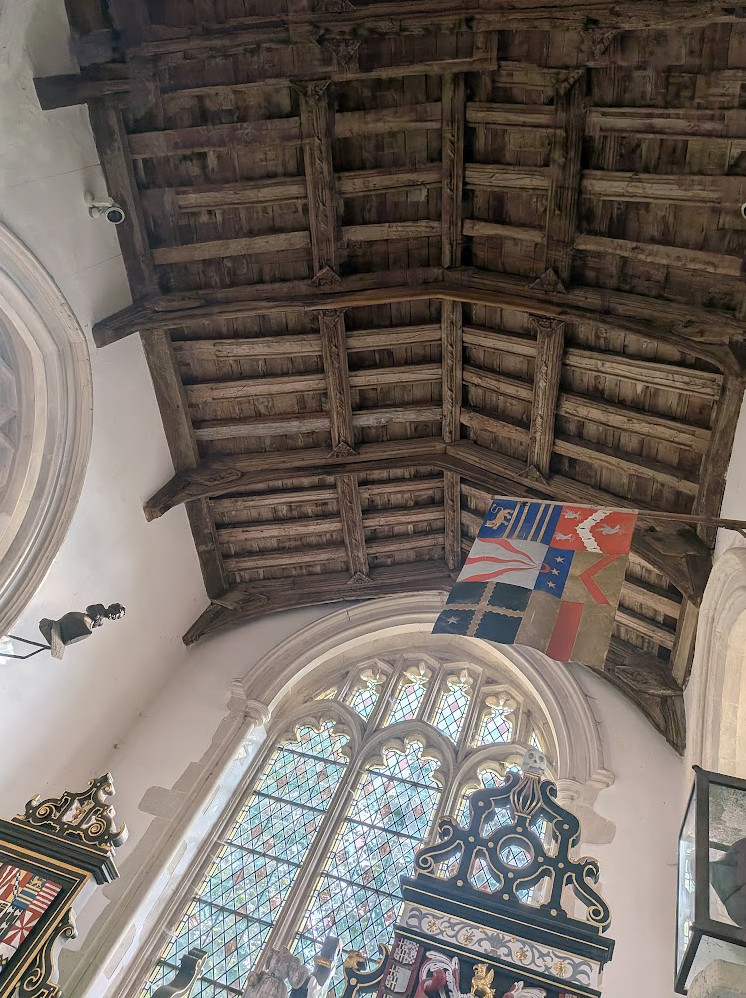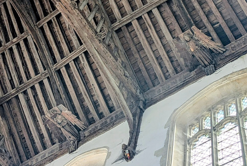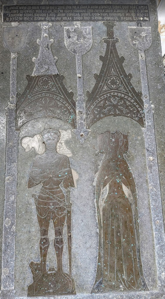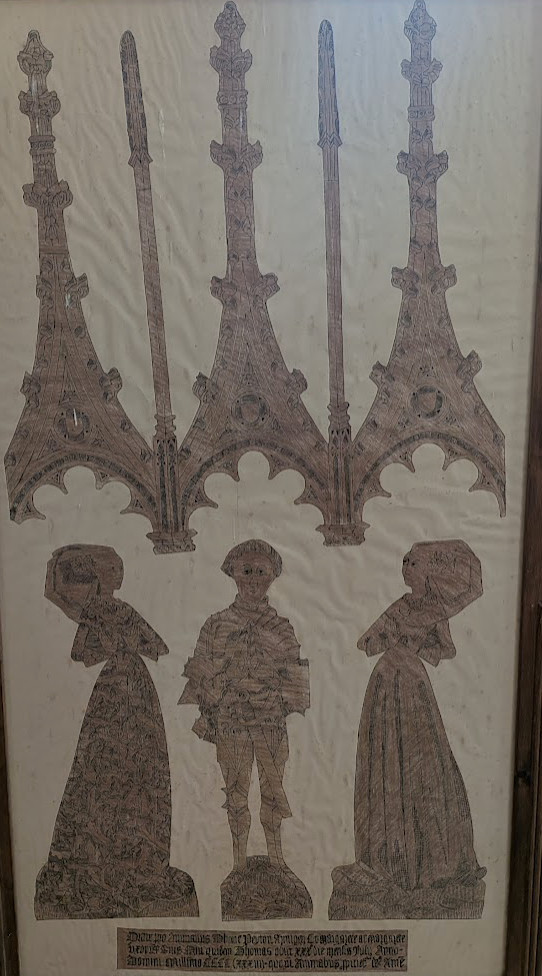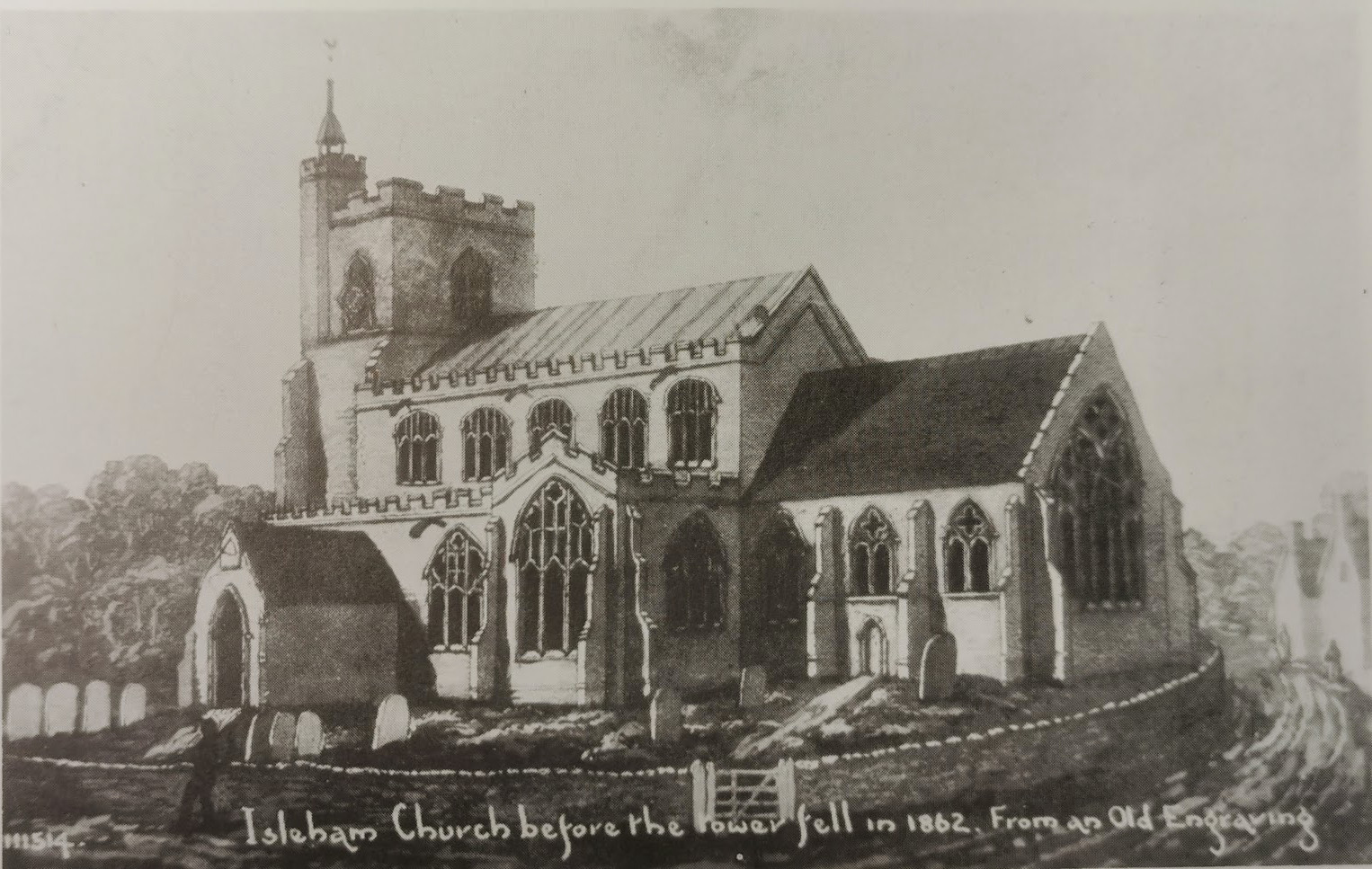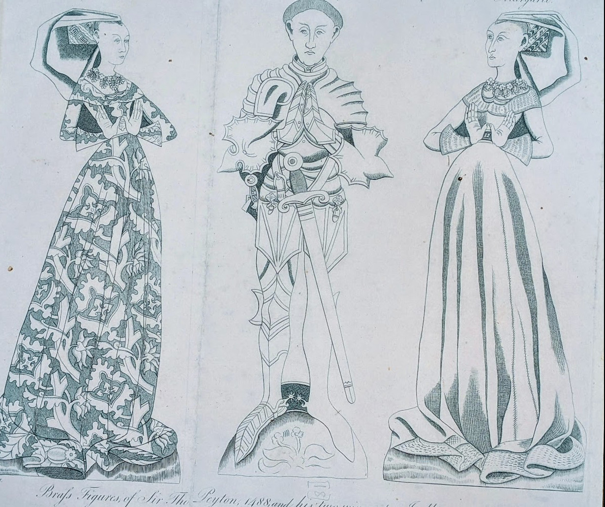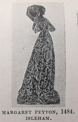 Margaret Peyton, 1484, IslehamParish church of cruciform plan dedicated in 1331, replacing an earlier church on the site of which traces remain in the stone- work of the north east corner of the nave and in the C13 Y-tracery in the north chapel. Much of the internal appearance dates from C15 when the roofs of the nave and aisles and the clerestorey were built. The west tower was rebuilt in 1863 by G.E. Street replacing one that had collapsed and the walls were refaced in 1893. The church has a particularly fine clerestorey and roofs of 1495 and is noteworthy for its monuments and brasses to the Bernard and Peyton families.