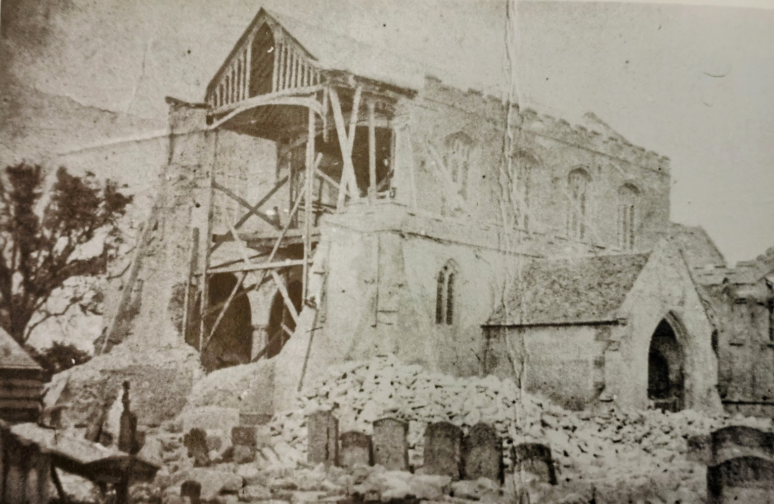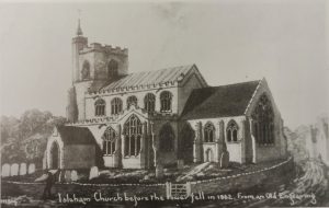 Fen and Marshland Villages by Anthony Day, p20, tells how Elizabeth Brown, hearing the collapse of the tower, came out to see how many workers had been injured. However, the workmen had just retreated to The Griffin after seeing a piece of masonry fall and the tower collapsed behind them and were saved.