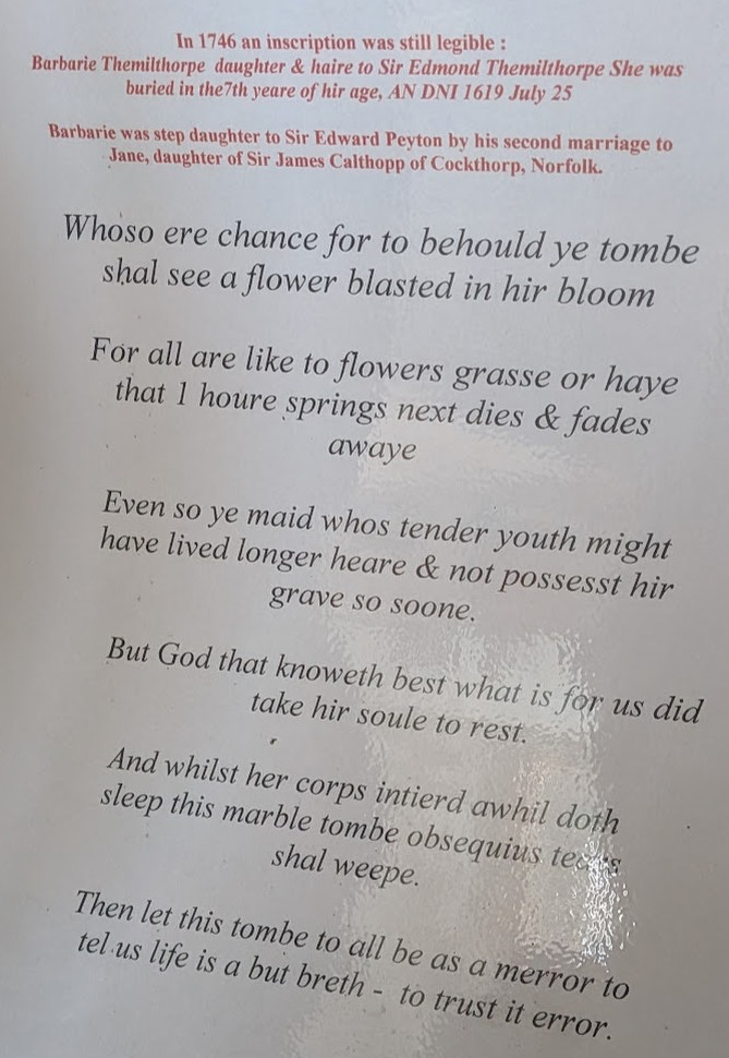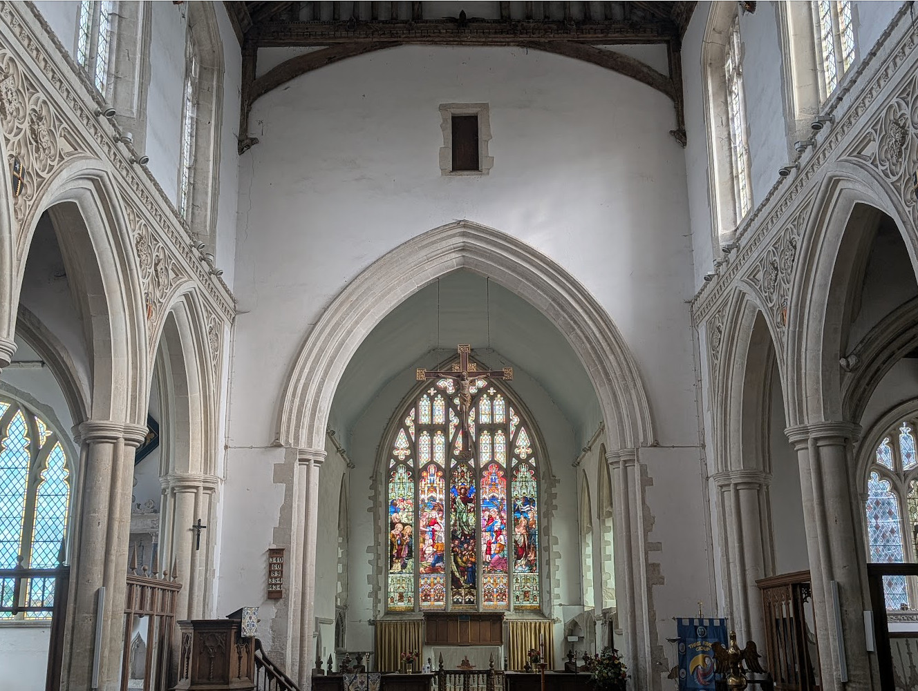 A Houghton notes in Memories of Isleham Village, that there is a 15th cent. brass. There is also a table made of bog oak and a seven-branched candlestick – a gift from Jewish schoolboys who were billeted there in WWII.