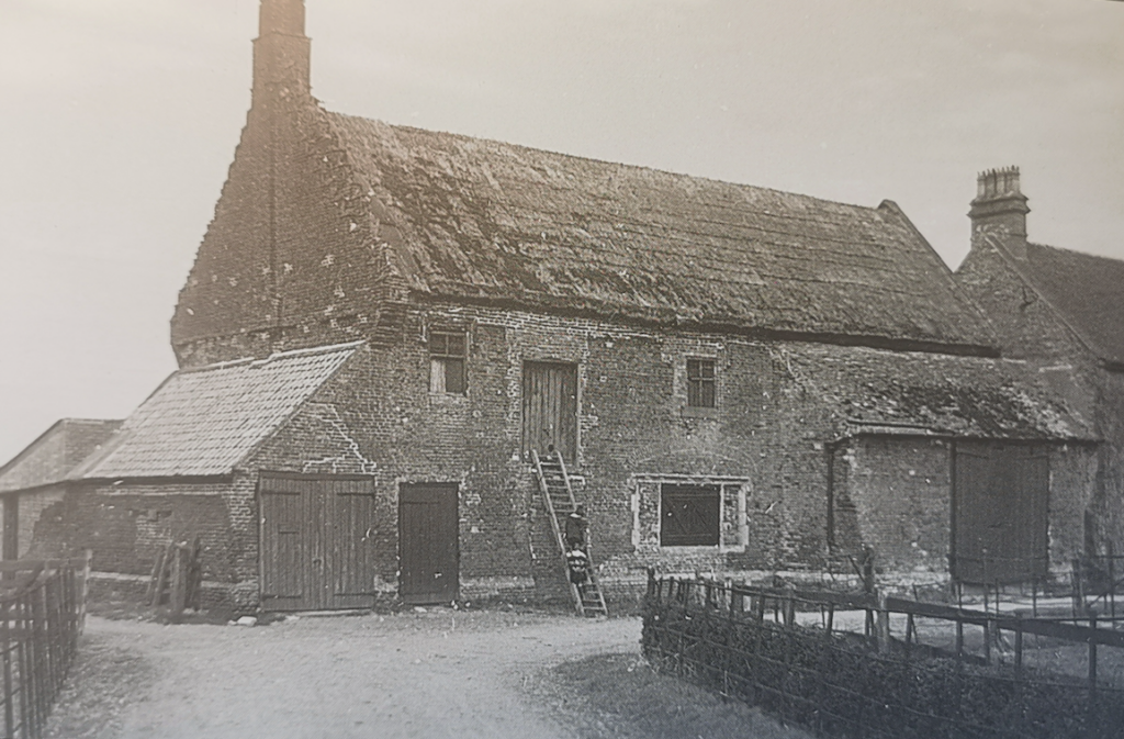 The picture shows the refectory of the Bishop’s Palace, Little Downham, used as a barn in 1914. The palace was constructed by Bishop Alcock towards the end of the C15th. In 1906 H Rider Haggard published an account of his visit to the area.