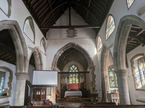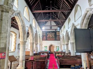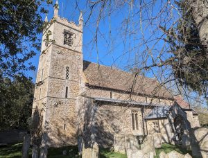 Parish Church. Tower C12 with C19 fourth stage replacing an earlier structure (W. Cole). C12 door reset in early C13 south aisle. Nave, aisles and chancel C13 unbuttressed, with walls repaired and partly rebuilt C19. C14 windows in chancel and aisles restored or replaced C19. Porch rebuilt C19 with C15 arch re-used. Roofs C19.