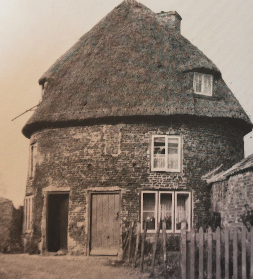 Little Thetford Round House, 1937 (photo L Cobbett)Vanishing Cambridgeshire p.175 notes that the origins of this building are uncertain. It was two three-storey cottages until 1959 and then stood empty. By 1980 it had been turned into one dwelling.