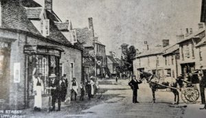 Littleport Main Street, c.1910. No 15 is two storey building on the right.Main Street was called Crown Street until the early 1850s. The shop with the bow window belonged to Robert Cheesewright, a grocer. It was also the Post Office.