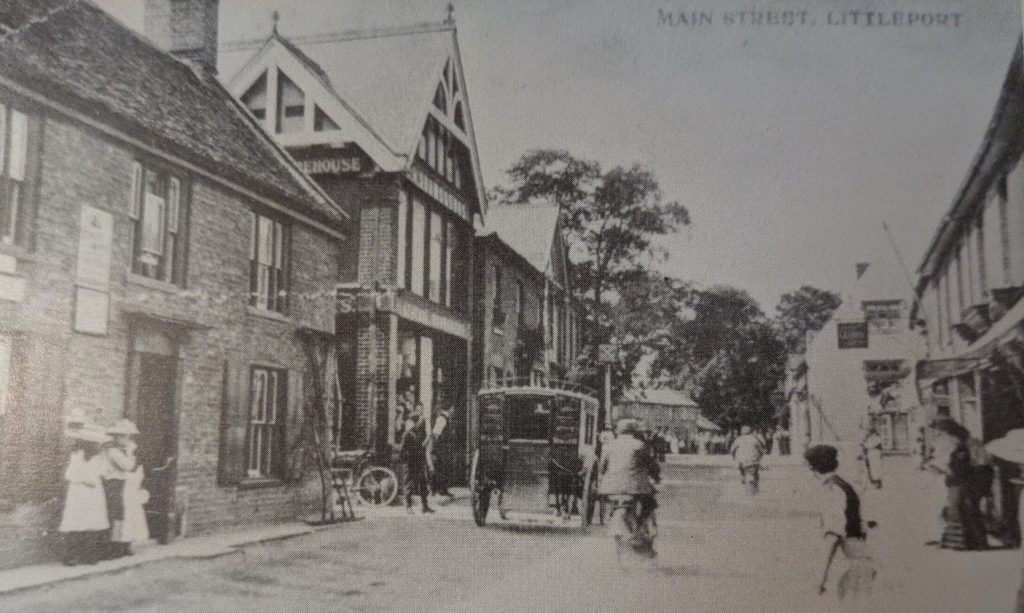 Main Street, Littleport c.1905On the left of the featured photo is the house of John Adams. He succeeded Mr Cheesewright as postmaster about 1900. Mr Adams owned the ironmonger’s next door; this had previously belonged to H & J Cutlack. Further away the sign of the Cross Keys pub can be seen; this closed down in 1908. Opposite is the Globe Inn; it was demolished in 1962.