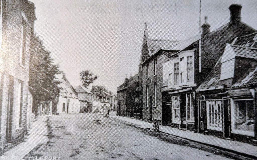 High Street, Littleport c.1915The railings of the Methodist Chapel can be seen on the right of the picture. The foundation stone was laid by Charles W Selwyn MP in 1889. The grocer’s shop next to the chapel was owned by Sampson Spooner in 1915.