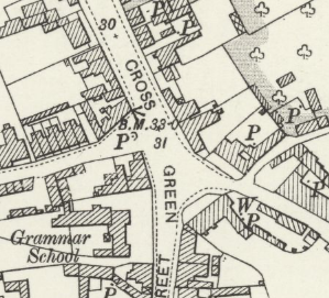 The town water pump stood at Cross Green. It had two spouts, one for ordinary use, another higher, for water carts.