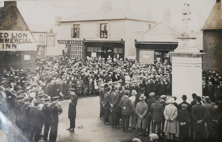 Parade outside Red Lion Commercial Inn Soham (date?1939)(MoC403.63)