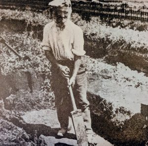 Anthony Day, Turf Village, describes the last of the commercial peat diggers at Wicken. They worked on fields beside Wicken Lode towards Burwell Lode where Josiah Owers, Wicken’s builder and carpenter, Bill Norman, postmaster and shopkeeper, and Mark Bailey, farmer, had land. Next to the Owers’ fields at Lapwing was land owned by a Harrison. In the middle of Lapwing lived another family named Badcock in a simple wooden shack that often flooded. It was nicknamed Lapwing Hall.