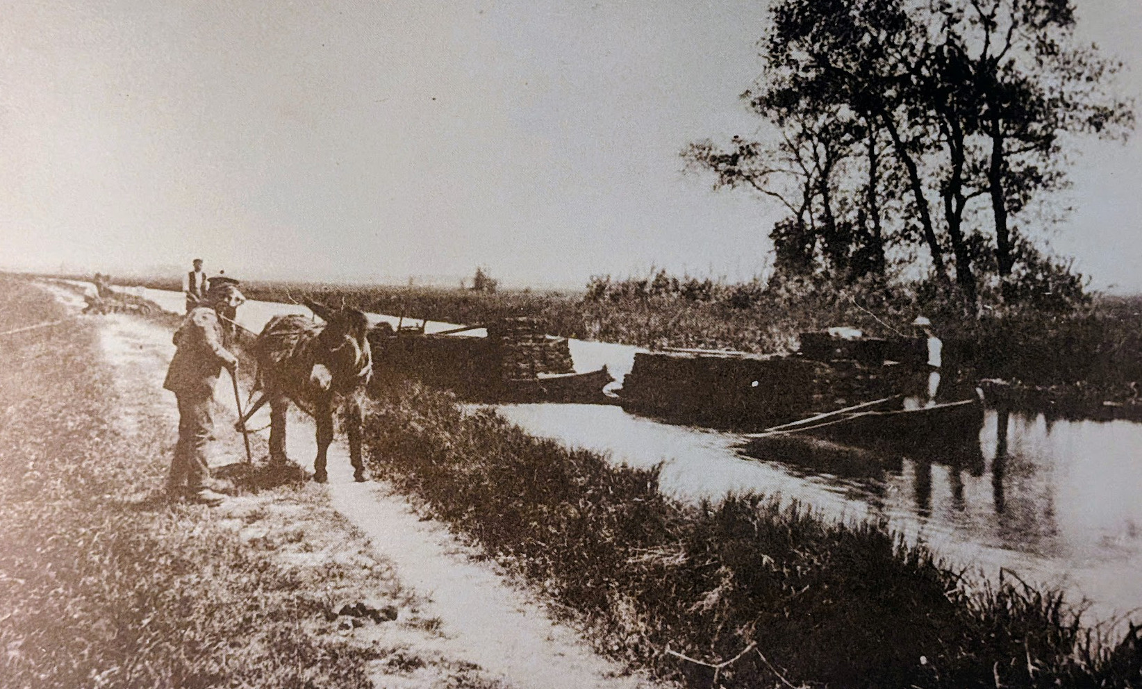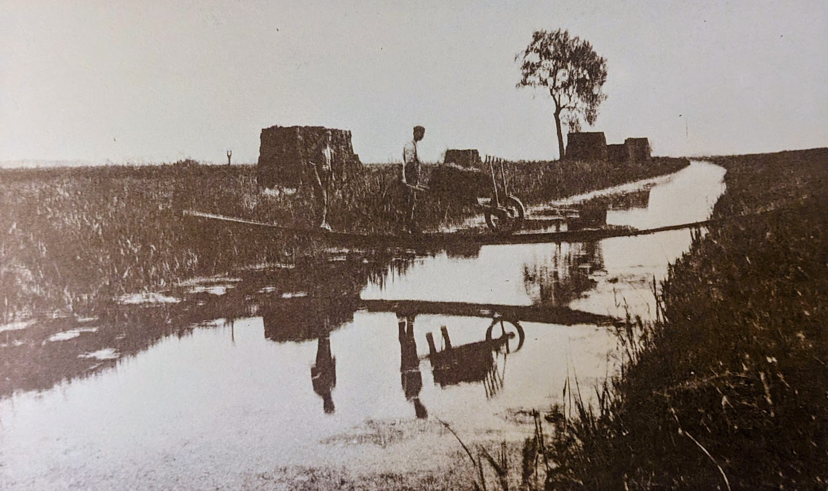 Robert Butcher crossing Comissioner’s Drain with a load of 100 turves, 1892 (P J Deakin)