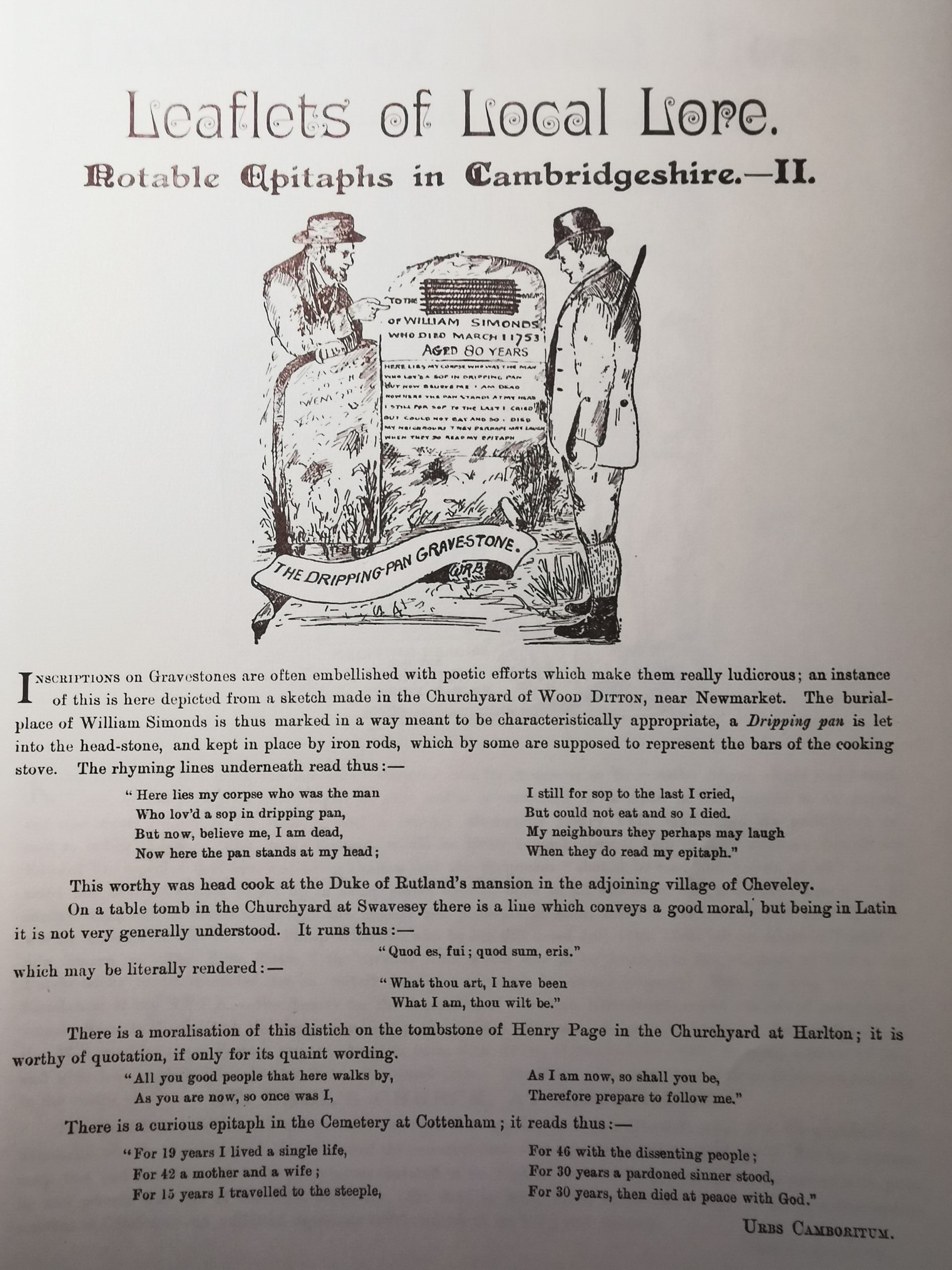 Notable Epitaphs in Cambridgeshire II: from Leaflets of Local Lore by Urbs Camboritum (Cambs Collection)